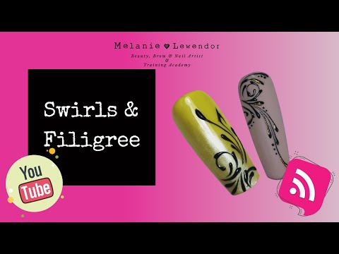 Nail art swirls/filigree Tutorial for beginners easy step by step - Filigree Monogram - Master the Art of gorgeous nail art swirls and lines !! With step by step easy to understand instructions ! www.melanielewendonacademy.co.uk.